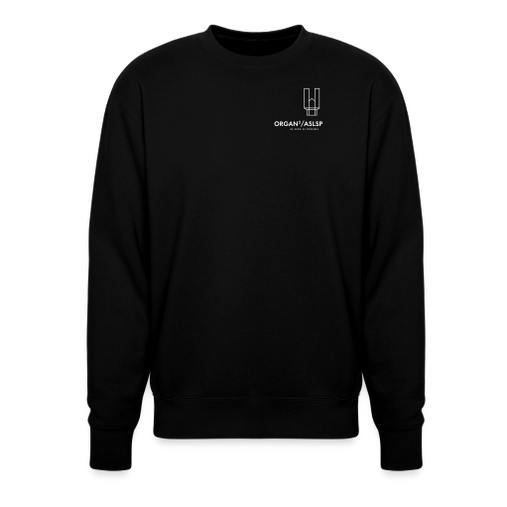 Schwarzes Sweatshirt mit Brust- und Rückendruck.